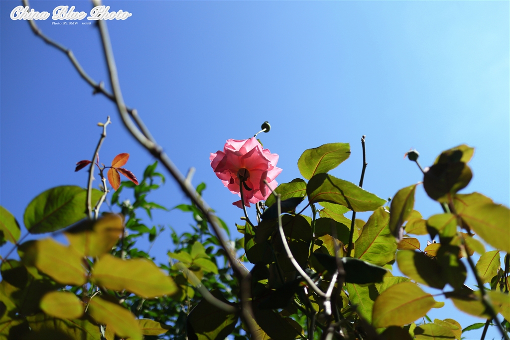 高いところに咲く薔薇