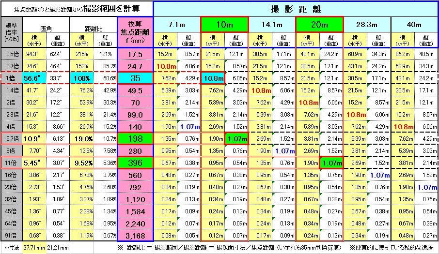 焦点距離と撮影距離から【撮影範囲】を計算