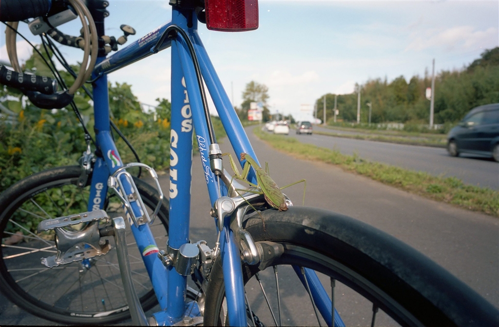 先日のカマキリです。走ってる時に、木から落ちて来ました。GR1s Portra160