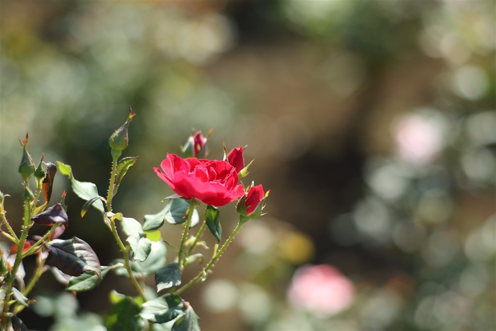 >ボケに浮かぶ秋バラの質感がいいです。