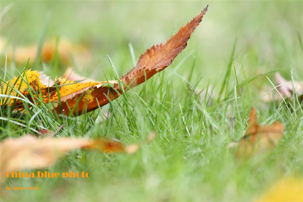 芝生の上の枯葉(腹ばい)