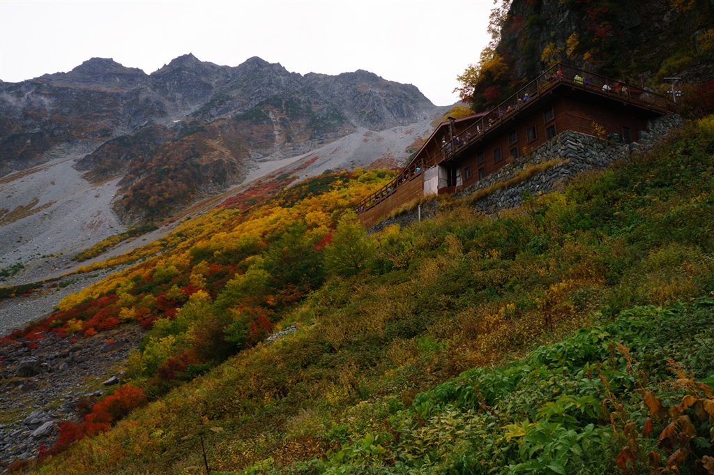 涸沢小屋と涸沢岳
