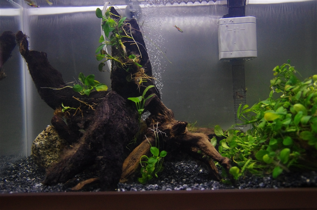 10年以上使っていた水槽が水漏れし始めたので、急きょ整えた水槽です。