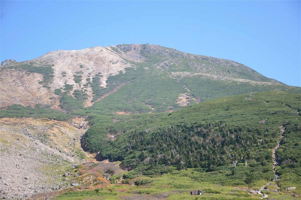 登山道くろぼこ岩付近から白山山頂を望む