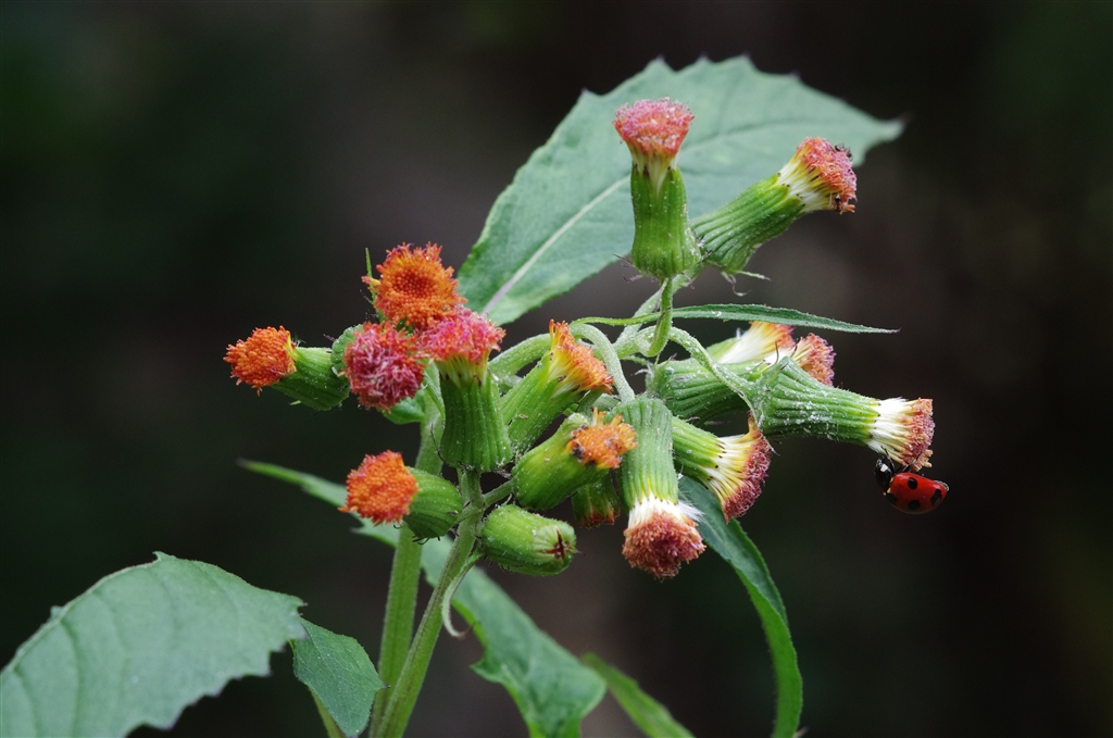 「くる禁」 ベニバナボロギクとテントウムシ