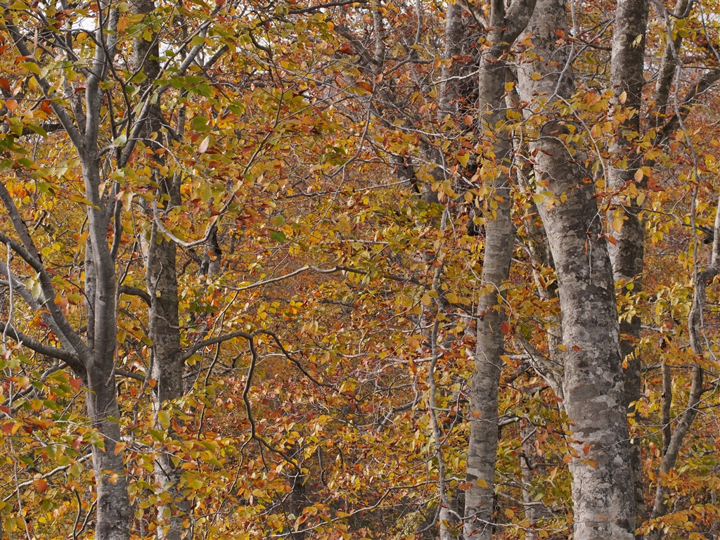 照葉峡上流ブナ林です。葉がかなり落ちてます。