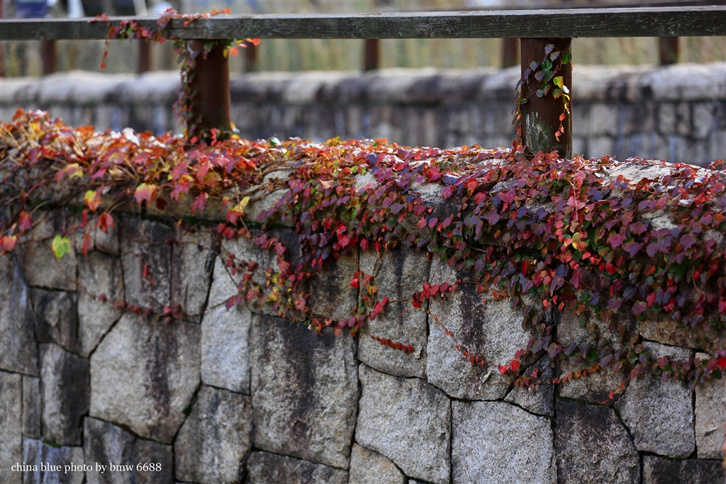 駐車場の石垣の蔦も紅葉