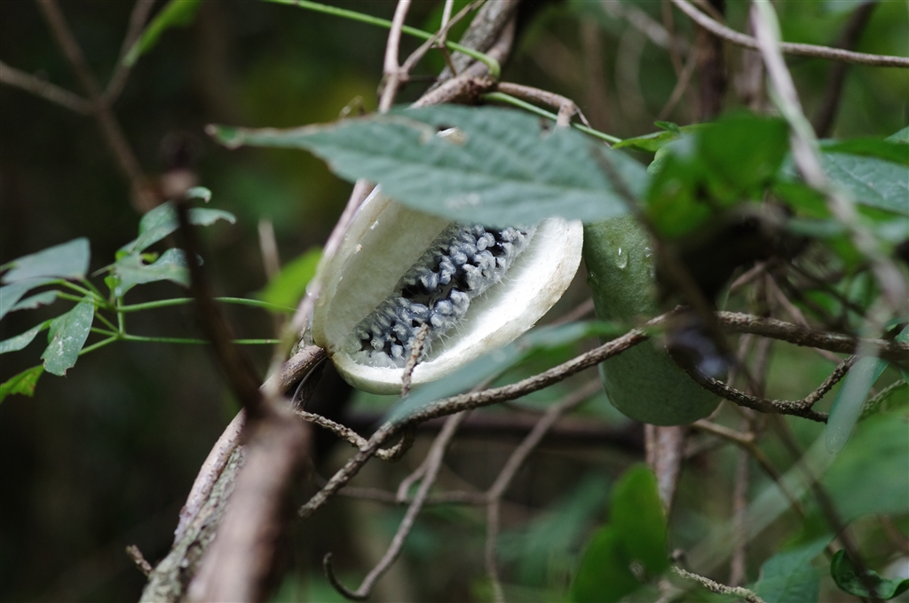 割れているアケビ