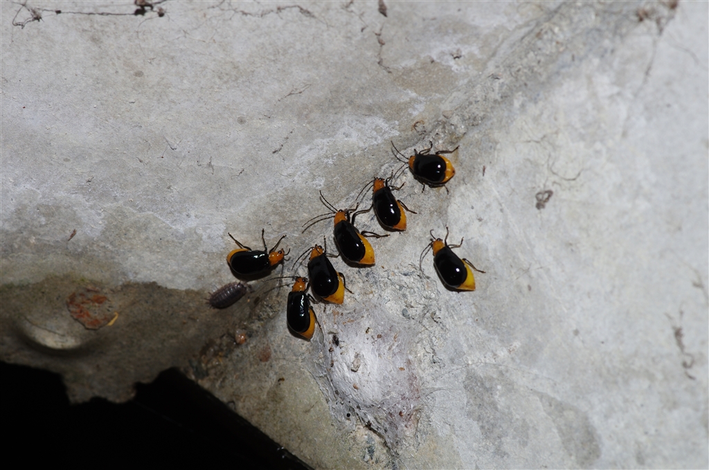 「くる禁」 集団雨宿り クロウリハムシ