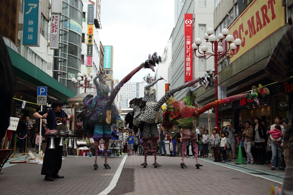 静岡の繁華街にダチョウ3姉妹
