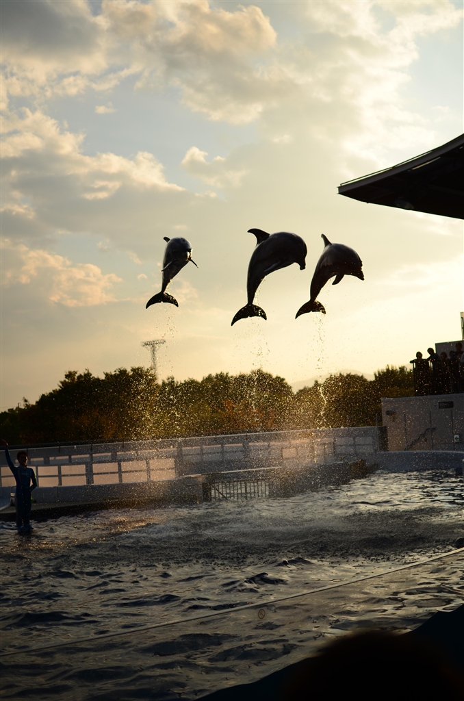 お祝いのイルカジャンプ爆