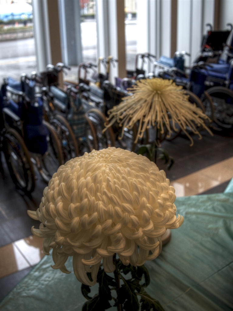 福祉センターで開催されていた菊の展覧会 花写真はやはり背景が大事