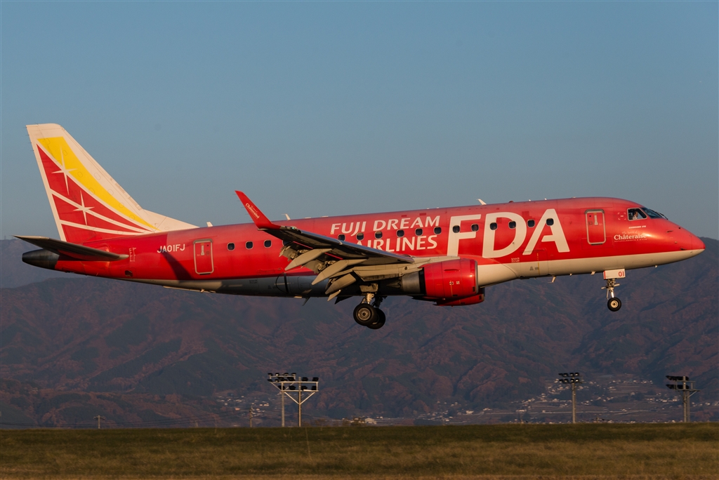 夕刻の光の中をランディング