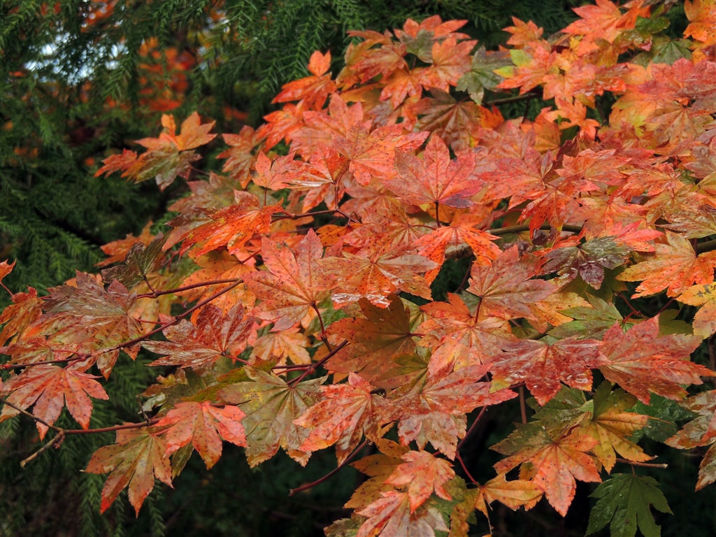 時雨に震えるウチワカエデ