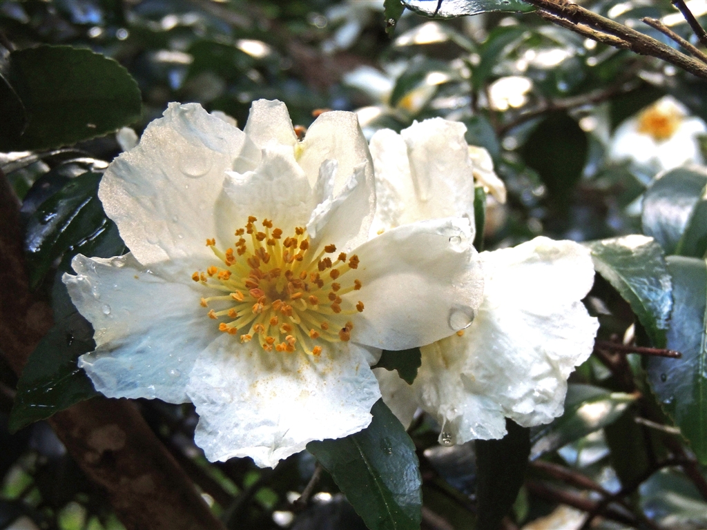 時雨のヤブの中でサザンカ(山茶花)
