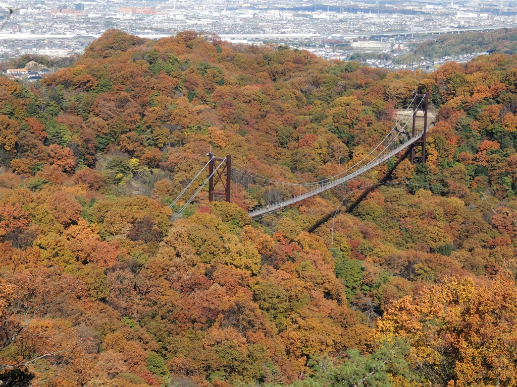 全山黄金色の中の吊橋「星のブランコ」1