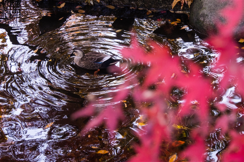 赤い葉っぱと赤い池
