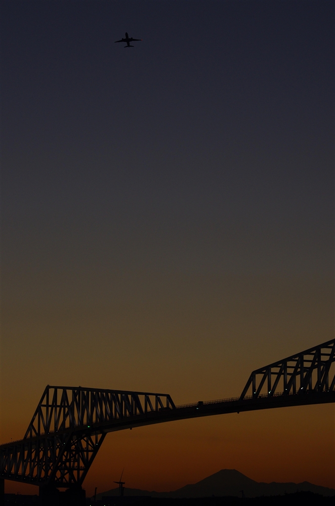 離陸機とブリッジと富士山