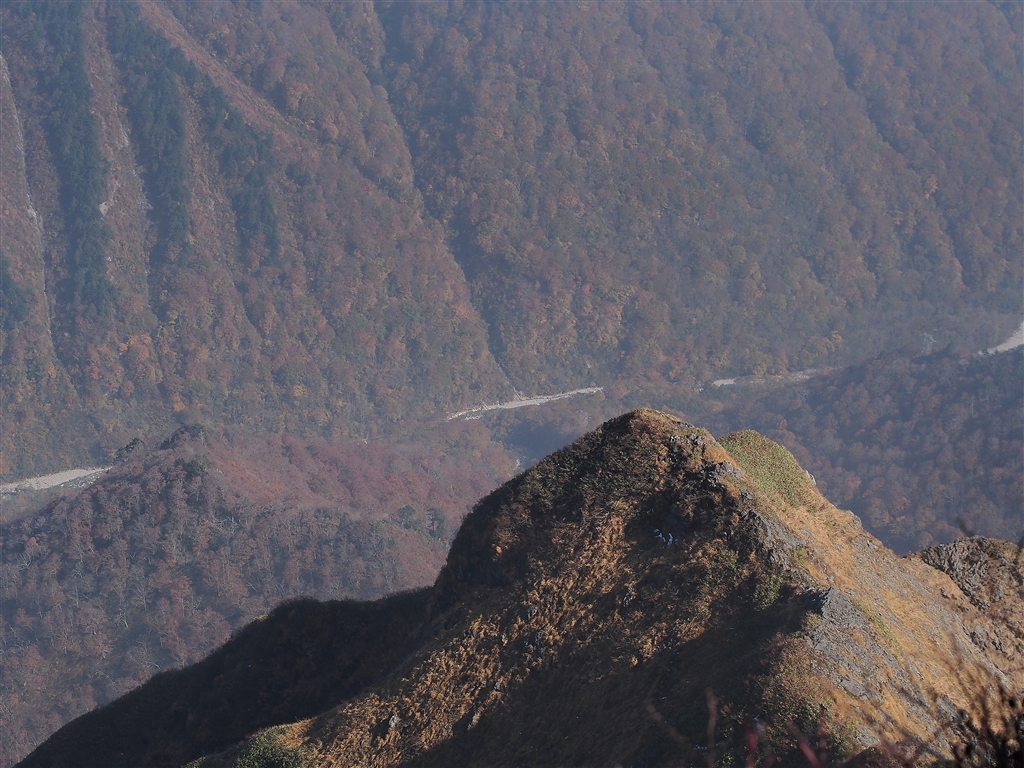 前出画像、左手ピークを山頂から
