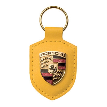 ポルシェロゴの黄色い革キーホルダー
