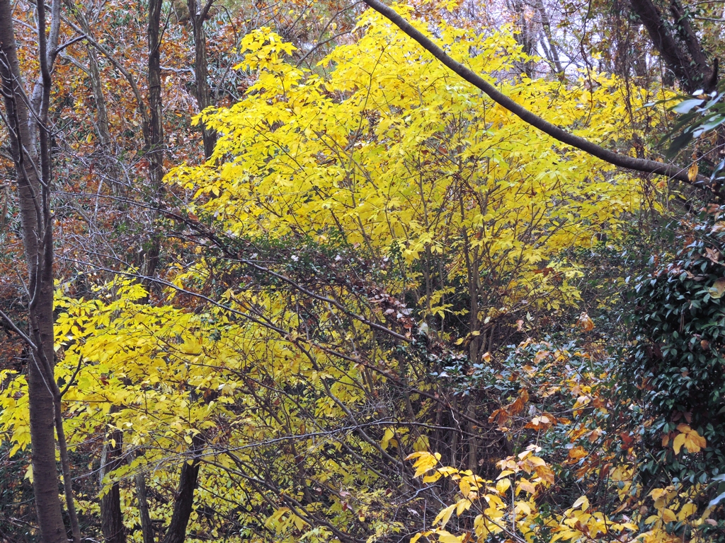タカノツメの黄葉、イチョウより鮮やかです