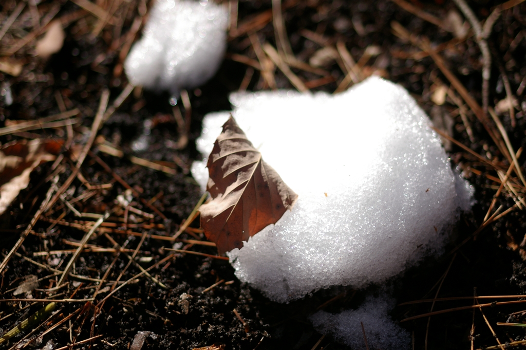 落ち葉と雪