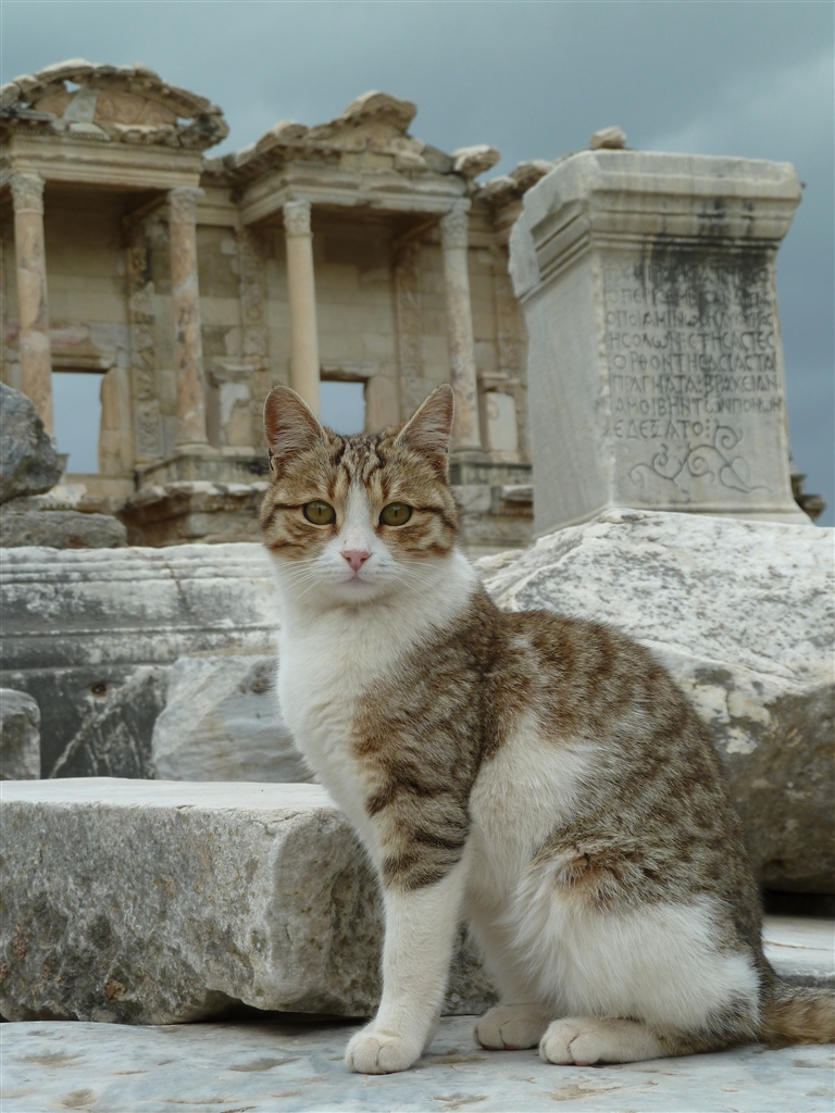 エフェソス遺跡で(後ろはローマ時代の図書館だそうです)