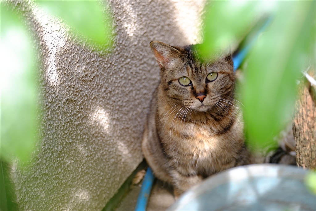 前の4枚目のネコが塀から降りたところです