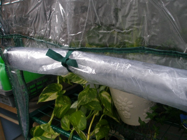 巻上げしたビニールを縛っておく紐が付いてます。