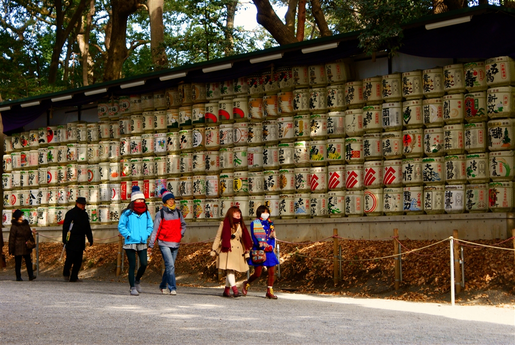 明治神宮に奉納された酒樽の数々