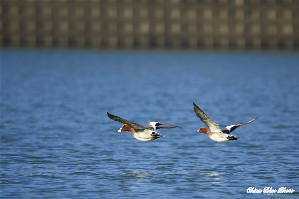 鴨の飛翔 修行写真。