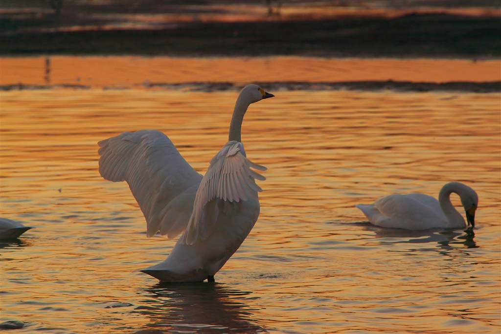 コハクチョウの羽ばたき