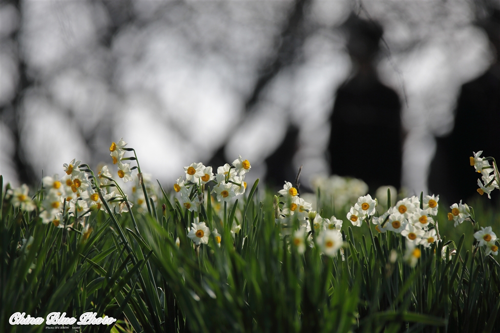 水仙 後ろは人影