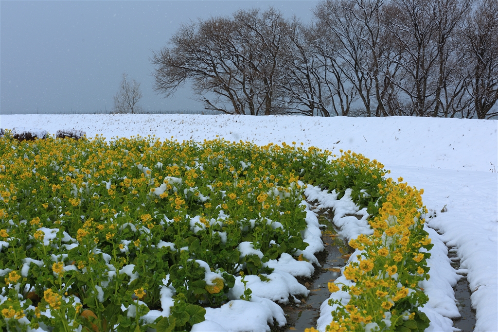「雪と菜花」