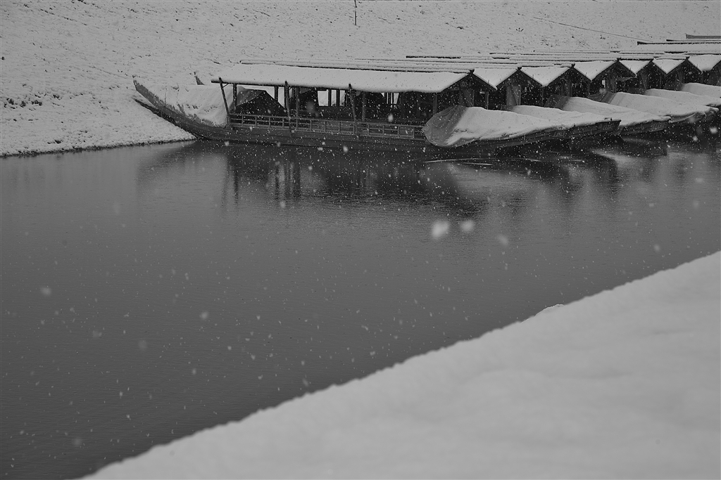 鵜飼船をモノクロで