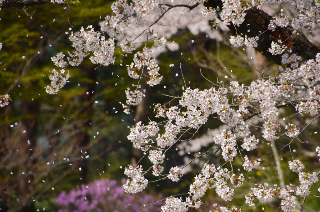 ガラス越しに桜吹雪が♪