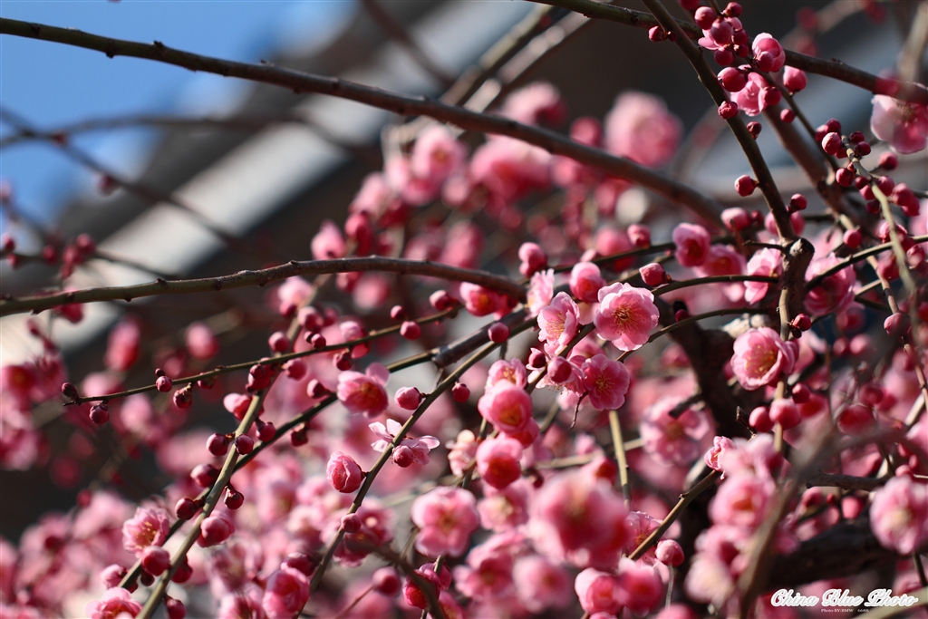 隣の家の紅梅。