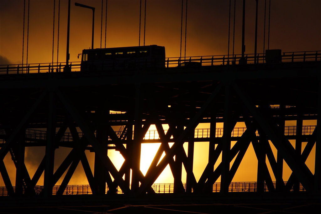 大橋越しの夕日
