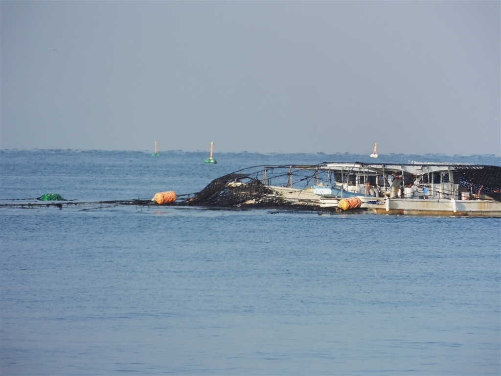 収穫船で、網を救い上げ、、、
