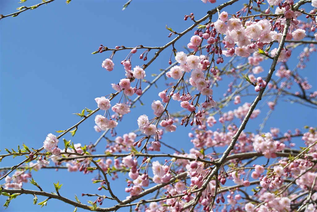 青空いっぱいのしだれ八重桜