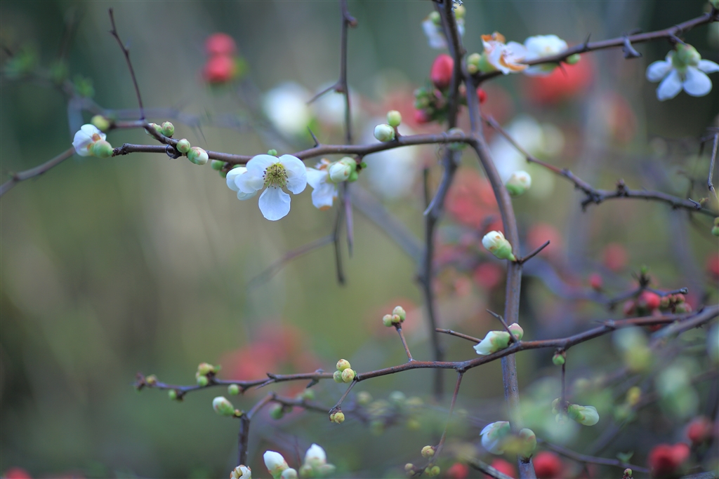 「ボケをかます木瓜(ぼけ)の花」 白も赤も木瓜