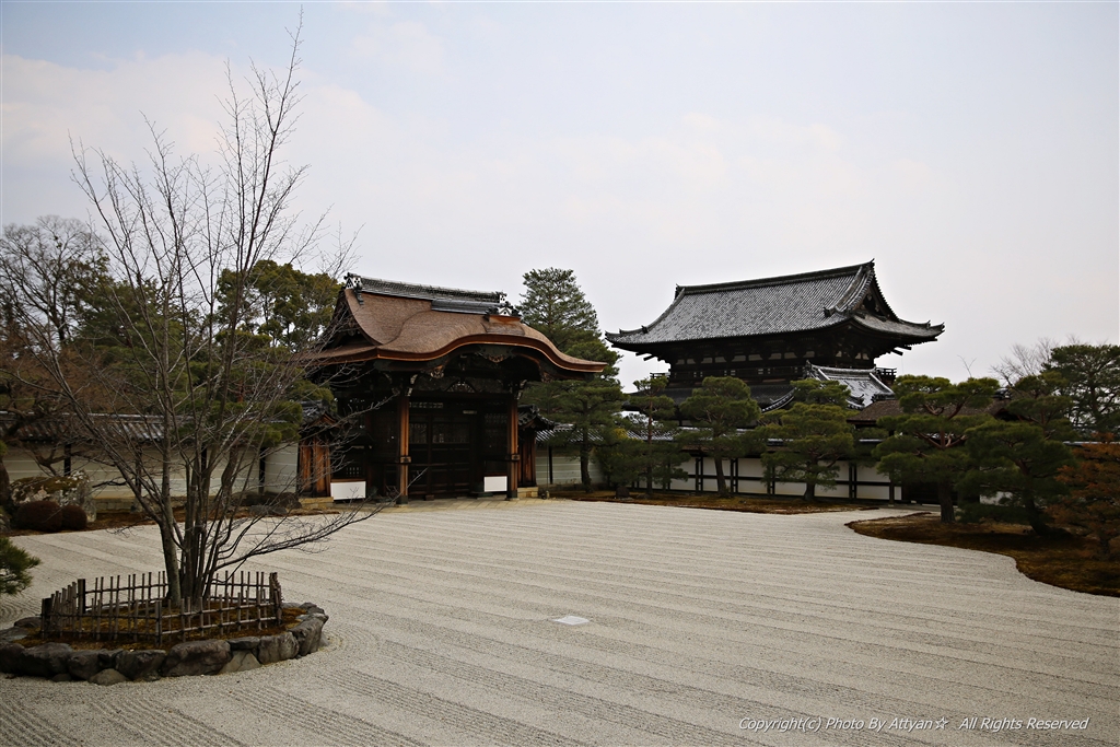 仁和寺の南庭、仁王門と勅使門を望む
