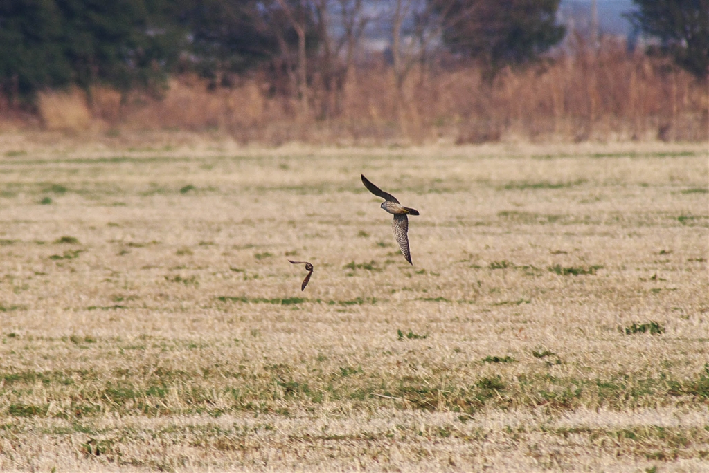 ハヤブサのツグミ狩り