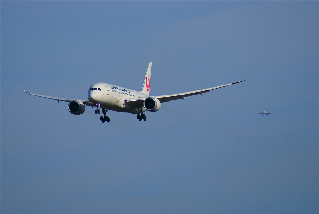 最近はAランBラン同時着陸で頑張ってます。JAL787の後ろはモヒカンジェット。