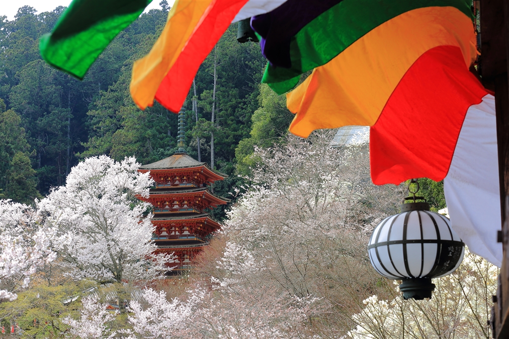「春の嵐」 本堂前より五重塔を望む