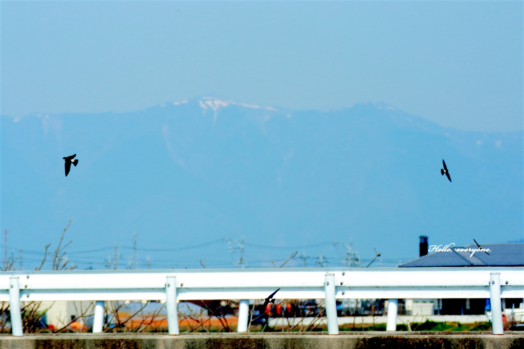 バックの山は残雪の比良山系