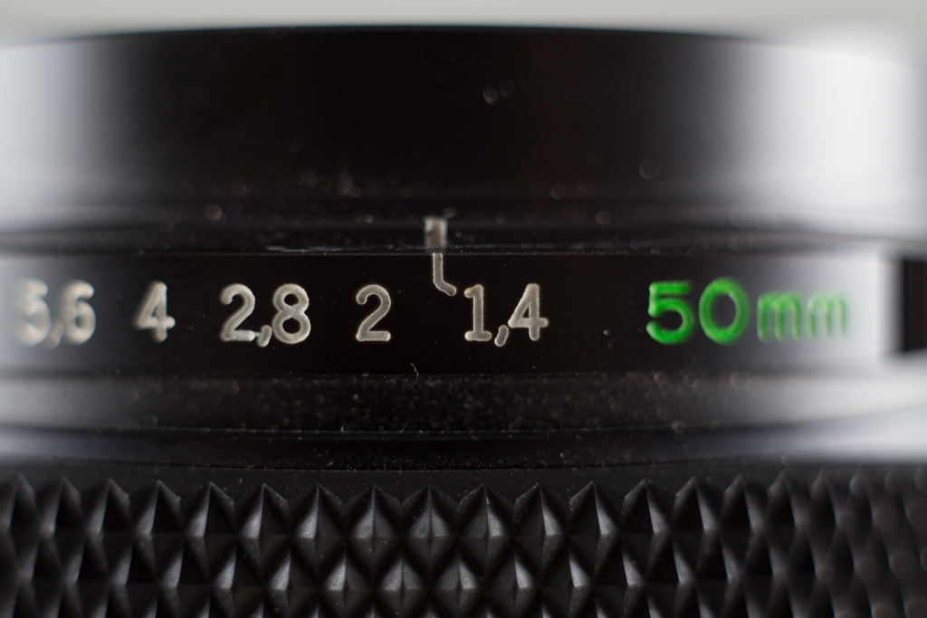 ズイコー50mmの絞り環を等倍、開放で。