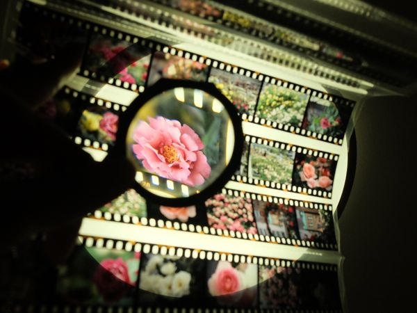 蛍光灯にかざして、虫眼鏡で。