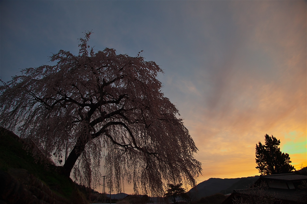 朝焼けのなかで岩太郎桜を