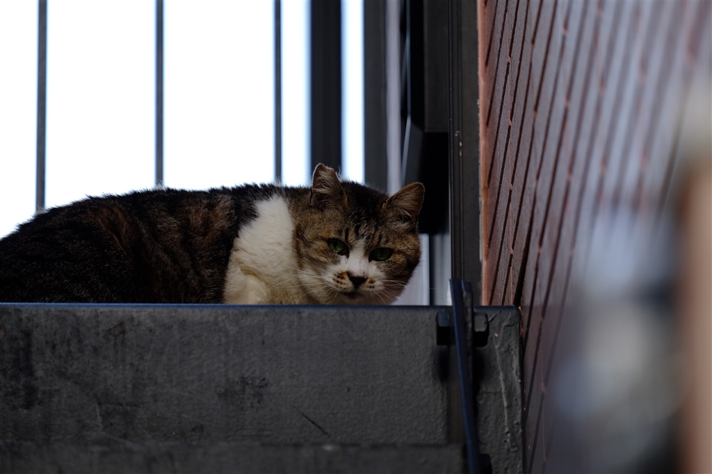 このネコはいつもは下にいますが上でご飯をもらっています